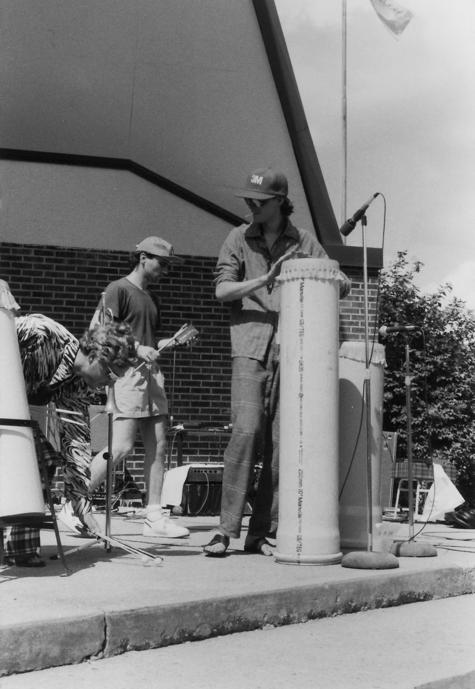 We recently unearthed a long-lost audio recording of the first SCW performance documented in an earlier post. This performance occurred on November 30, 1984 in the Chandelier Room of the Mayfair Hotel in downtown Kitchener, Canada. Along with the four members of SCW, additional performers were: Charles on vacuum cleaner/balloon, Jim on sewing machine, Claudio on power tools and John on heavy metal. Enjoy!