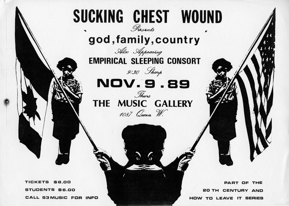 SCW’s God, Family, Country show was performed on November 9, 1989 at Toronto’s venerable Music Gallery as part of the 20th Century and how to leave it series curated by Myke Dyer.