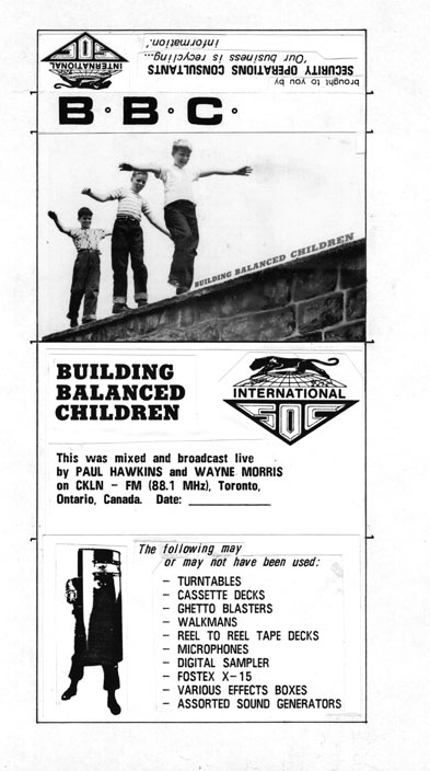 In 1987 dWM resumed his assault on the airwaves of Toronto with Flag Air Base, broadcast live on CKLN-FM. The premise of FAB was to invite different guests for each episode to create a set of improvised sonic mayhem. Depending on who was guesting, any given episode might be concerned with politics (Nicaragua, atomic weapons), found sounds, live instruments or pure noise. Here’s how dWM describes it: